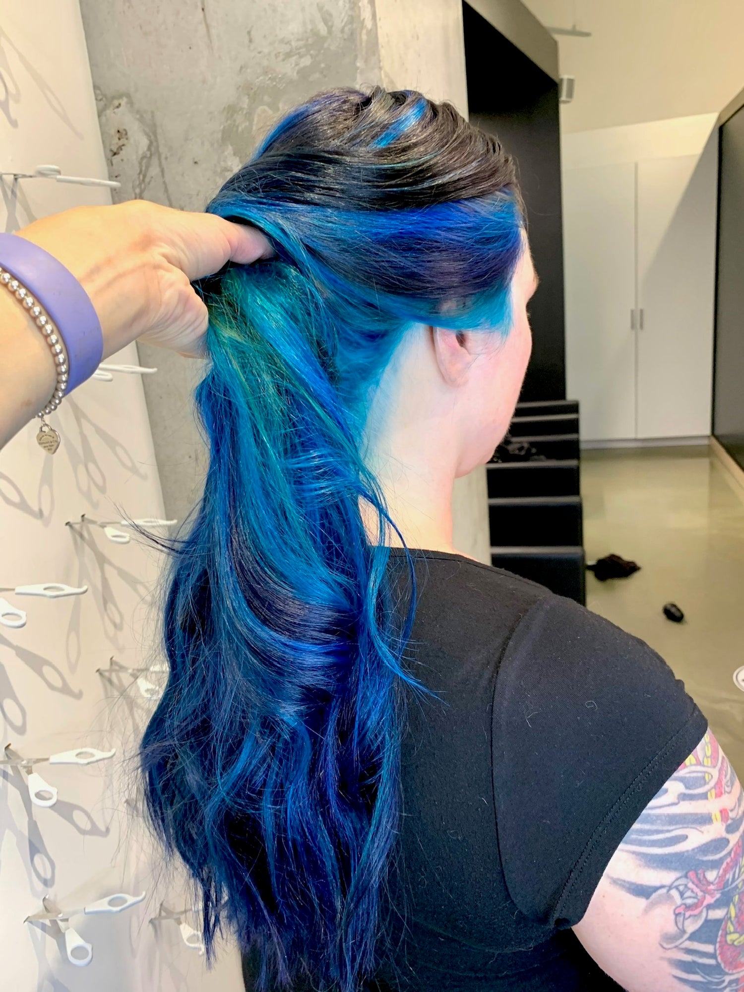 The owner specializes in this type of project. She has an impressive collection of flash coloring and she uses Pulp Riot, a coloring renowned for its extraordinary colors. She loves making personalized recipes, sometimes mixing up to three colors, in order to arrive at the exact color desired by the client. Sarah only takes feasible projects and she will give an estimate of the time needed when making an appointment.